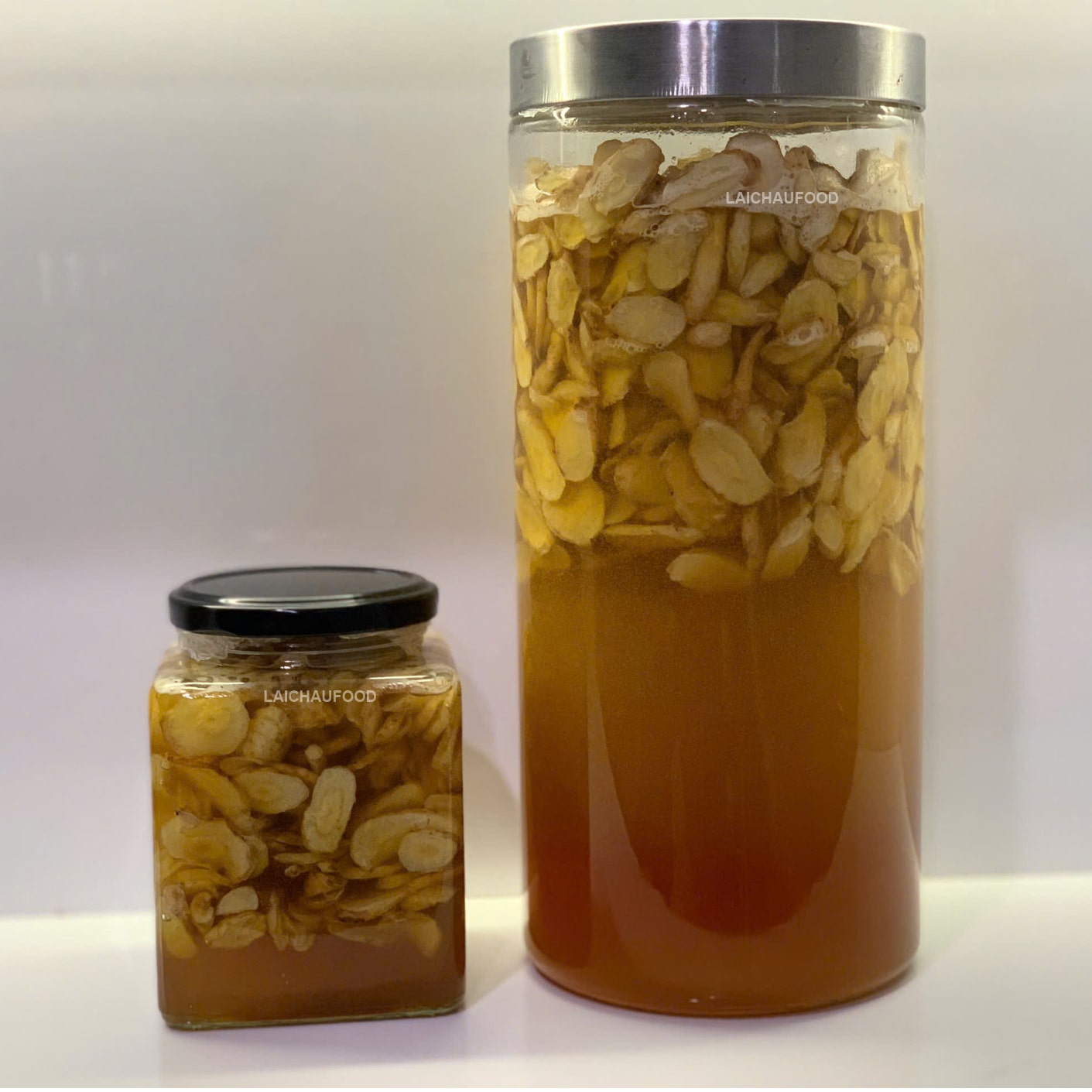 - Ngâm sâm tươi: Thái lát 0,5–1 cm. Tỷ lệ 1 phần sâm : 1–1,5 lít mật ong.