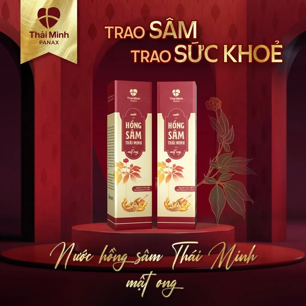 - Lấy khoảng 5-10ml nước Hồng sâm Thái Minh mật ong pha trong 100ml nước ấm (60°C), khuấy đều và sử dụng.