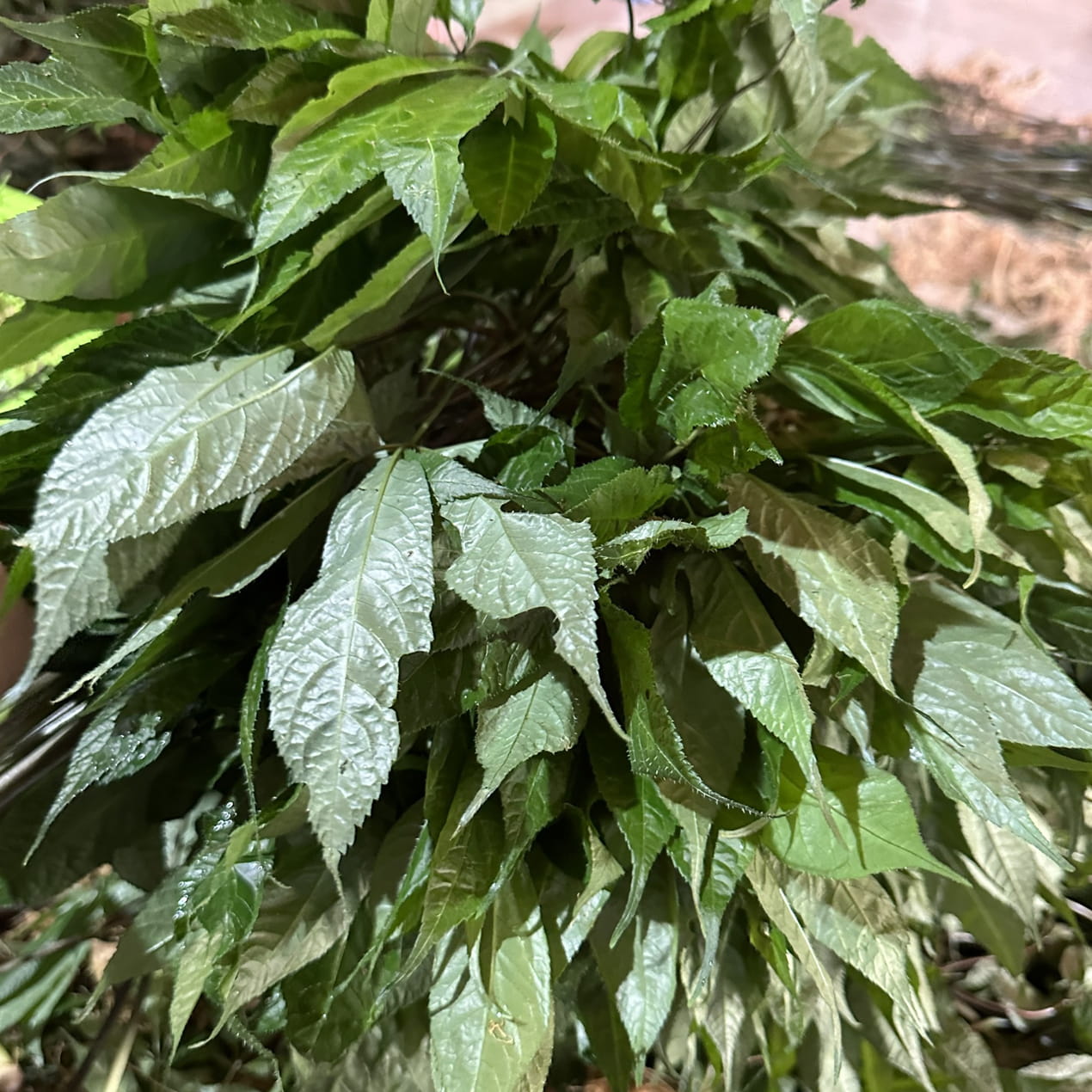 | Nguyên liệu | Lá sâm vừa thu hái | Lá sâm đã sấy khô |